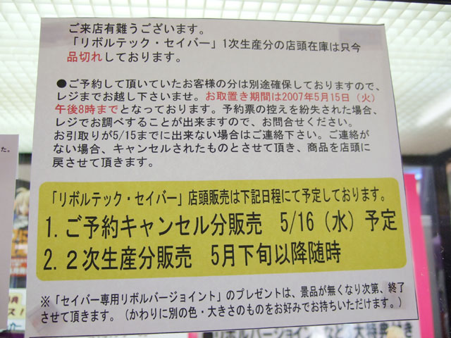 また、掲示されていたPOPによると、先日発売された「セイバー」(AM)は販売数10万個突破したみたいです。