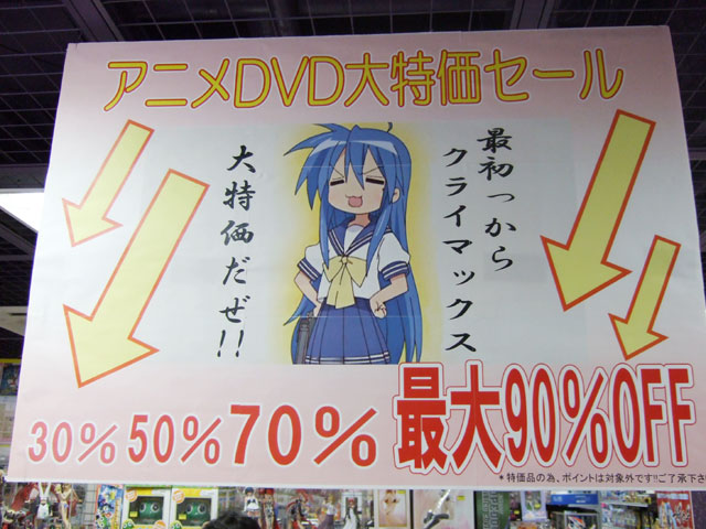 POPにはアニメらき☆すた第4話のこなたを用い「最初からクライマックス 大特価だぜ!!」とされていました。