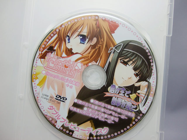 配布されていた、「君が主で執事が俺で」(AA)、「Honey Coming」(AA)W体験版ディスクのパッケ表裏と中身。