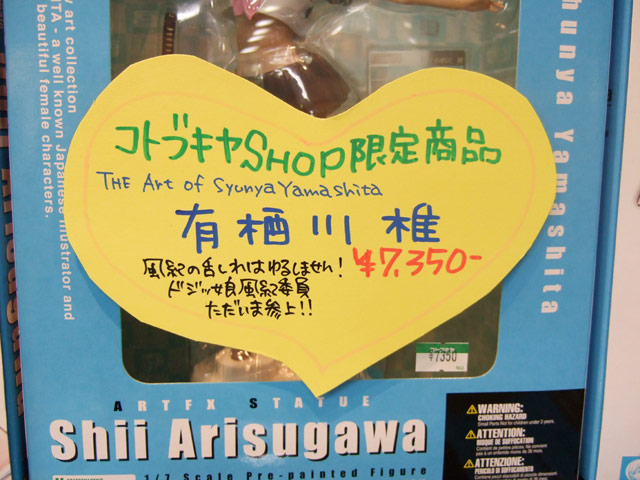 5月12日、コトブキヤ限定「有栖川 椎」(RA)が発売され、コトブキヤラジオ会館では2F店頭の新作平段のほぼ片面を使って展開していました。