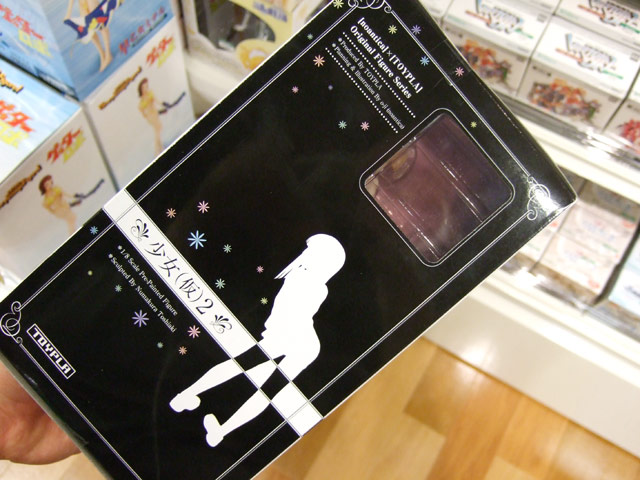 5月15日に、トイズ・プランニング「少女(仮)2」(RA)が発売されました。これは、ワンフェス2007冬等でもサンプル展示のあった、2005年12月発行のにゅーあきばγで掲載されていた、おーじ氏のイラストを、セーターを布製にして、着脱可能な状態で立体化したものです。色移り防止の為か、セーターは別梱包されていて、パッケあけるといきなり裸で収納されてましたw