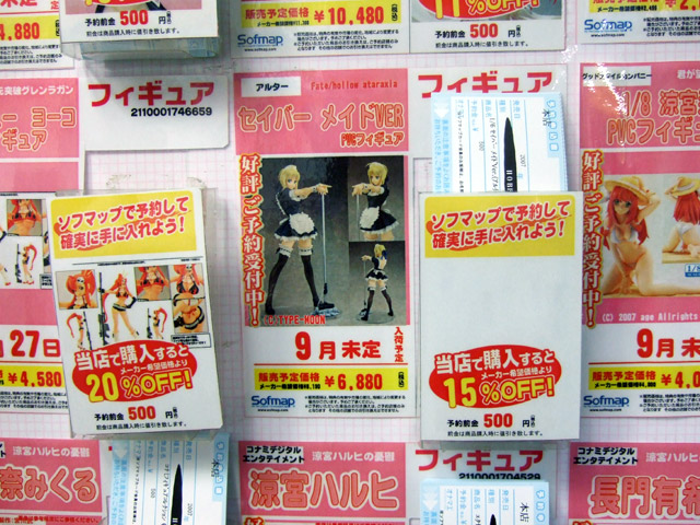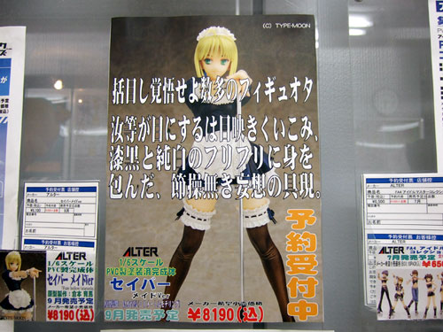 他、ソフマップ本店コトブキヤラジオ会館キャラシティなどでもアルターFate/hollow ataraxia セイバー メイド ver」(AA)の予約受付は開始していて、某店でお伺いしたところ、予約数は順調に伸びているとのことでした。
