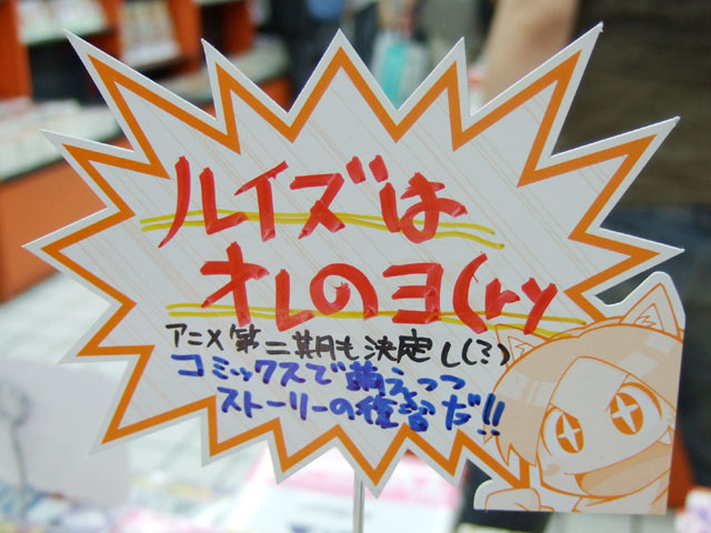 他、23日に入荷確認出来たのは、コミック、小説ともに山積みされていたメロンブックス、K-BOOKS、「ルイズはオレのヨ(ry アニメ第二期も決定し(?) コミックスで萌えっっ ストーリーの復習だ!!」というPOPのあったとらのあな1号店等でした。