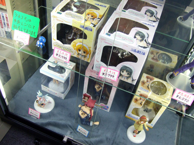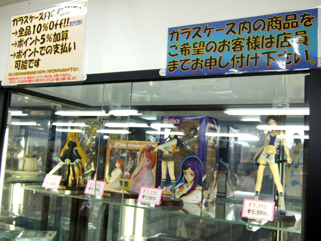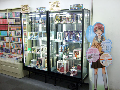 K-BOOKSでは、先月辺りから、雑誌のおまけ等ではない、単品のフィギュアの取り扱いを本格的に開始しています。フィギュアは専用のショウケースに展示され、レジで申告して買う感じになるみたいです。売られていたのはメガハウス「銀色のオリンシス セレナ」(AA)(参考レビュー)や、アルター「塵骸魔京 風のうしろを歩むもの」(AA)(サンプル展示)等、比較的新しいもの。