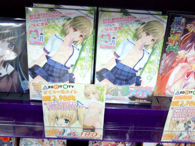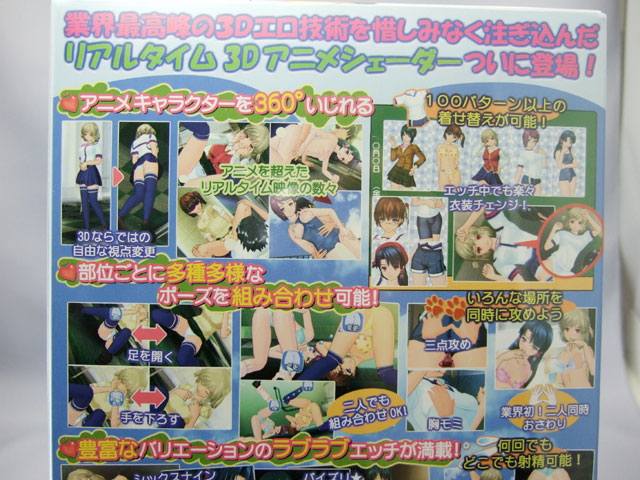 5月25日、ILLUSIONのエロゲ「すくぅ〜るメイト」(AA)が発売されました。これは「リアルタイム3Dアニメシェーダー」によって、2Dのような雰囲気のキャラでありながら、実際は3Dなので、アレやコレやを様々な角度から見れたり、いじくれるシステムのリアルタイム3Dのエロゲ。とらのあな本店のPOPでは「もう僕たちは次元の枠を超えるべきだと思うんだ。」とのことw