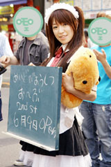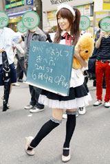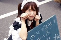 ・ミニスカ着物な女性が「COS de Live(コスドライブ)vol.9 」のチラシ配り