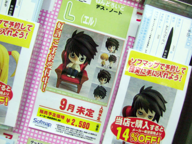 グッドスマイルカンパニー「デスノート ねんどろいど 弥 海砂」(AA)と「デスノート ねんどろいど L」(AA)は、ソフマップ本店ととらのあな本店でも予約開始していたみたいです。