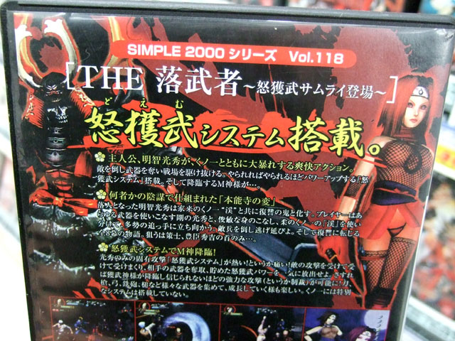 PS2「SIMPLE2000シリーズ Vol.118 THE 落武者 怒獲武サムライ登場」(AA)のパッケ裏面の解説など。