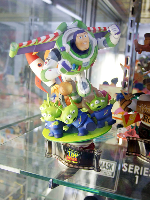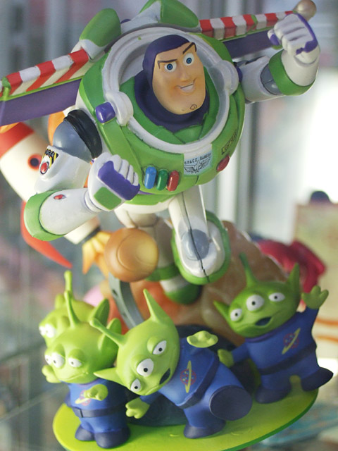 ・ピクサー長編映画の処女作にして大ヒットとなった「トイストーリー」からバズ・ライトイヤーが登場。リトル・グリーン・メンも一緒です。
