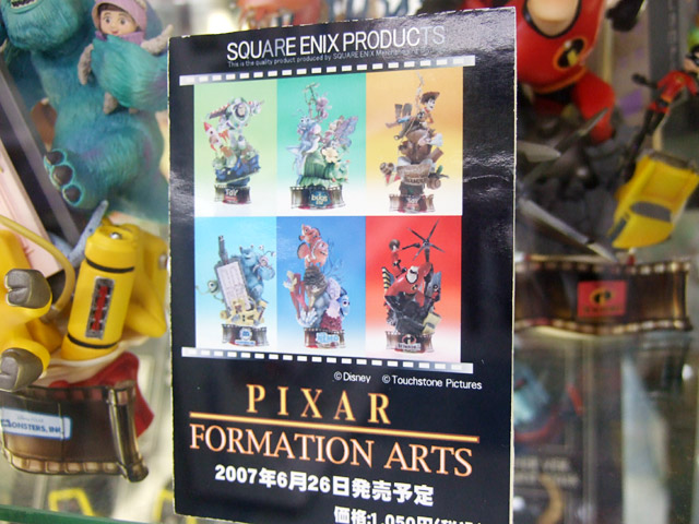 スクウェアエニックス「ディズニー&ピクサー フォーメーションアーツ」(AM)のサンプル展示がキャラシティにて開始しています。これは、ピクサー・アニメーション・スタジオが製作したCG映画に登場したキャラクター達をトレフィにしたものです。価格はトレフィとしてついに大台に乗っかっちゃった、1パッケ税込み1,050円ですが、クオリティもかなりすごいものとなっていました!