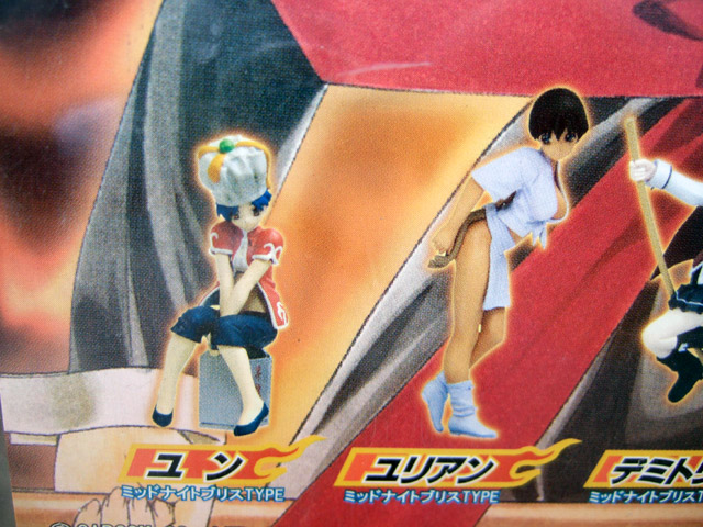 これは、カプコンの2D対戦格闘ゲーム「カプコン ファイティング ジャム」のゲーム中にデミトリのミッドナイトブリスを受け、女性の姿になっちゃったキャラクター達を立体化した、2005年発売の第1弾(参考レビュー)に続く第2弾となるものです。