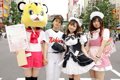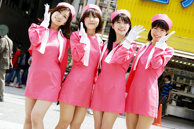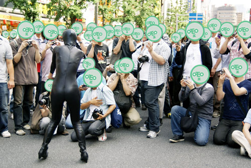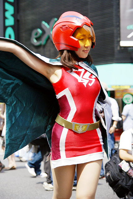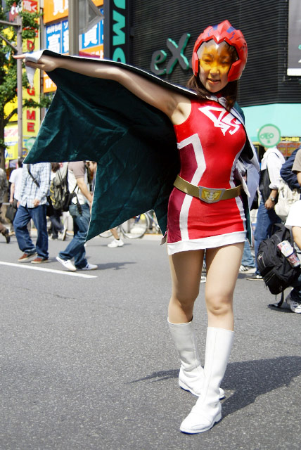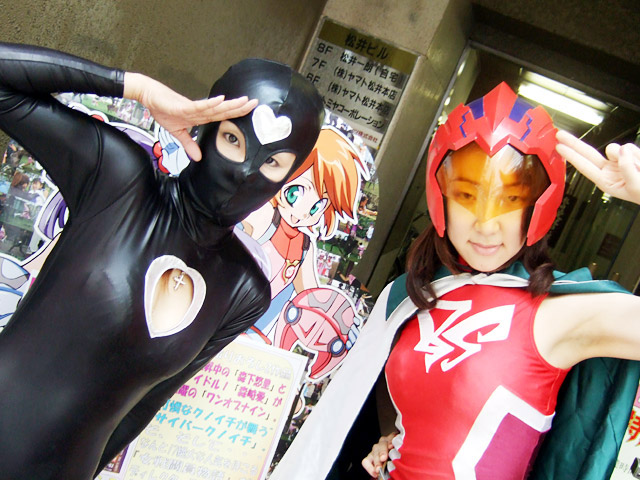 秋葉原マップさんと秋葉原blogさんのほうでもお伝えされているように、メイドに見慣れた秋葉原でも さすがにボディスーツは目立っていました。