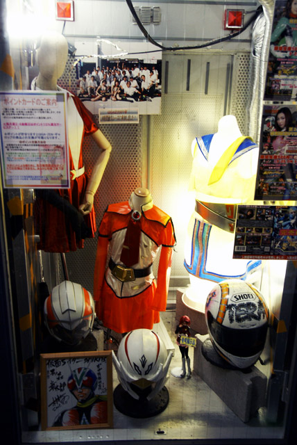 ヒロイン特撮研究所 秋葉原本部には大量の特撮もののDVDが販売されているほか、撮影で使用された衣装のディスプレイも展示してありました。