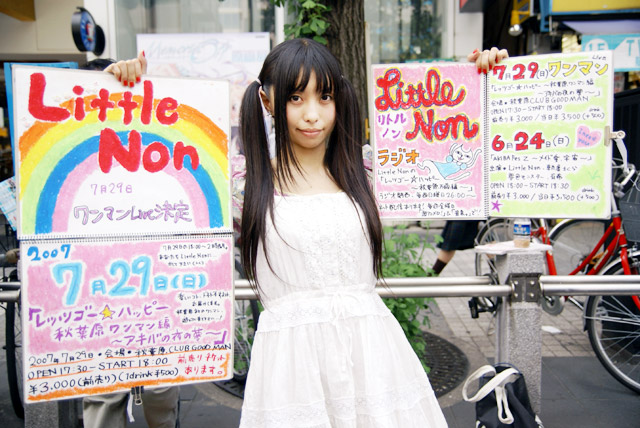 Webラジオでも金曜日に配信されている「Little Nonのレッツゴー☆ハッピー〜秋葉原万歳編〜」(Little Nonのレッツゴーハッピー – Wikipedia)の告知のほか、前回に引き続き 7月29日に秋葉原 CLUB GOODMANにて開催される秋葉原では初のワンマンライブのチケットの領布もされていました。