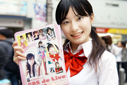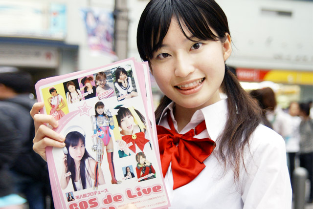 ・ミニスカ着物な女性が「COS de Live(コスドライブ)vol.9 」のチラシ配り
