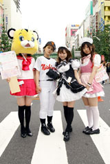 特撮ヒロインの映像を製作しているZENピクチャーズの作品、女戦闘員物語 PARTIIIとバードソルジャーの衣装を着たお二人が「Z.A.C」の告知活動をされていました。メイドのいる風景は当たり前となった秋葉原ですが、さすがに全身黒づくめのボディスーツは目立っていました。 ほかLittle Nonさんのライブ風景など、6月3日の秋葉原のホコ天等の様子をお伝えします。