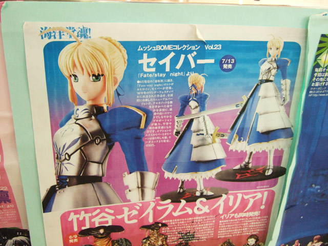 なお、海洋堂ホビーロビーに掲示されていたPOPによると「BOMEコレクション第23弾 Fate/stay night セイバー」(AA)(ノンスケールで、全高約220mm。価格は税込4,725円。)が7月13日発売予定とのことです。