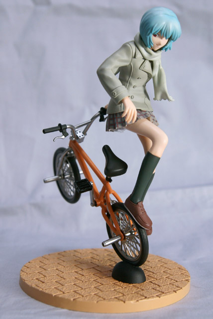 コトブキヤの商品説明によると「リニューアル計画によって再起動中の『新世紀エヴァンゲリオン』より、綾波レイをBMX(自転車)で華麗に技を決めている瞬間を立体化。アクロバチックな演技から躍動感ある生き生きとした表情を見せてくれます。ポージングも今までにない印象的なものとなっております。自転車の作りにもこだわっており、様々な角度から多彩な面をみせてくれます。」と紹介されています。