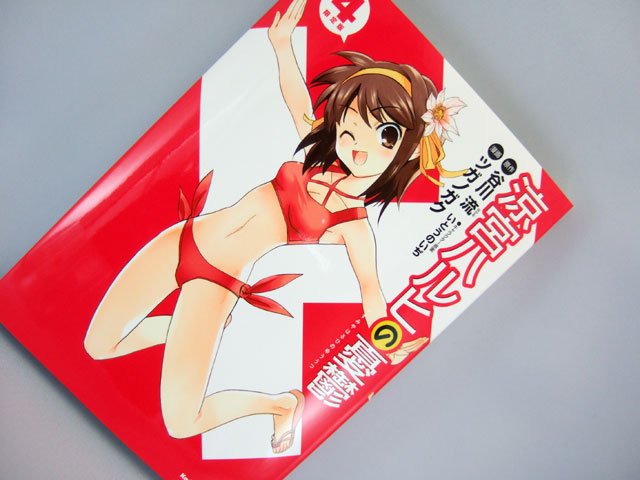 6月6日、角川書店涼宮ハルヒの憂鬱 4巻 涼宮ハルヒフィギュア付き限定版」(AA)が発売されました。これは、ブクロBlogさんの記事でハルヒの水着姿が眩しい・・・とされていた、水着姿のハルヒイラストのオリジナルカバーのコミックス第4巻、涼宮ハルヒフィギュア、いとうのいぢ氏イラストの3人娘(ハルヒ、長門、みくる)3種のポストカードがセットになったものです。