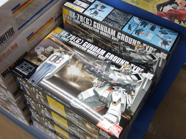 6月7日、バンダイ「1/144 HGUC 陸戦型ガンダム」(AA)が発売されました。これは、アニメ「機動戦士ガンダム 第08MS小隊」に登場する「陸戦型ガンダム」をプラモデルで立体化したもの。キャラシティでは特設コーナーを設け、サンプルを展示していた他、POPでは「て言うか〜、これ売れないとバンダイアプサラスにEZ8とか葬られそうだし〜みんな1個小隊分は買うよね」