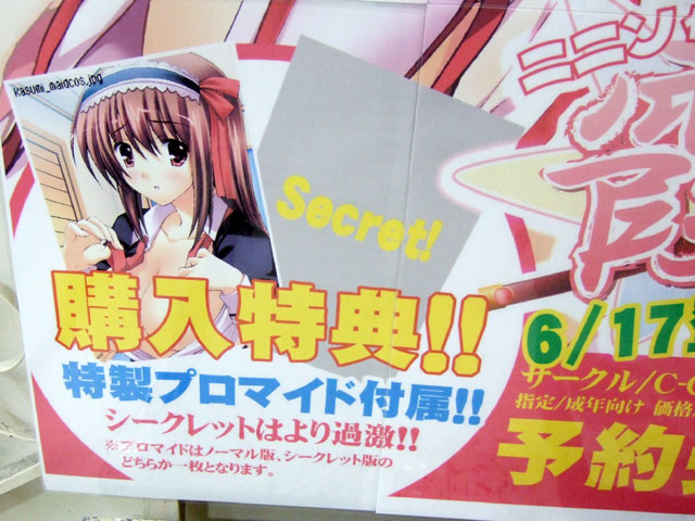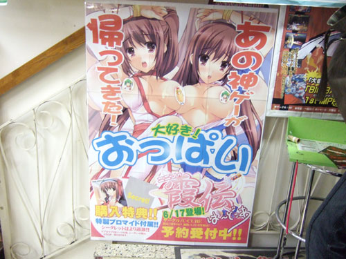メロンブックスにて、コミケ71で頒布されたサークルC-CUBEの同人ソフト「ニニンが霞伝 は〜どこあ」が6月17日から発売という告知POPが出てました。これは、メロンの商品説明によると「世界の中心で乳を揉みしだく…あの霞とのおっぱいをもう一度!あなたの股間を勃ち上がらせる至高のおっぱいゲー!」というもので、ジャンルは「愛と肉欲とポロリあどべんちゃあ」