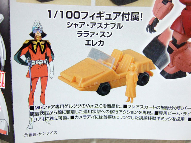 ■ 同スケールのシャアフィギュア(立ち人形、コックピット座り人形)と同スケールのエレカー及びララァ・スンが付属。