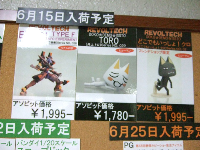 キャラシティ2Fにて、6月のバンダイもの+αの入荷予定日の掲示が開始していました。