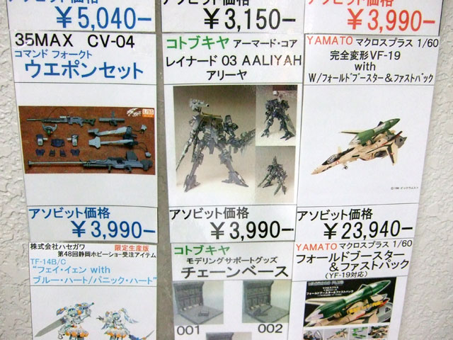 「戦闘機単体で敵中枢への進攻を可能にした小型のフォールド航行システムである、フォールドブースター装備とファストパック装備パーツセット。発売中の完全変形YF19にそれぞれ装備することが可能。更に今回初のギミックとしてフォールドブースターに電飾LEDを内臓し、フォールド航行のイメージを再現してみました。またブースターを装備しない場合は、付属の専用ラックにおいてディスプレイが可能。」