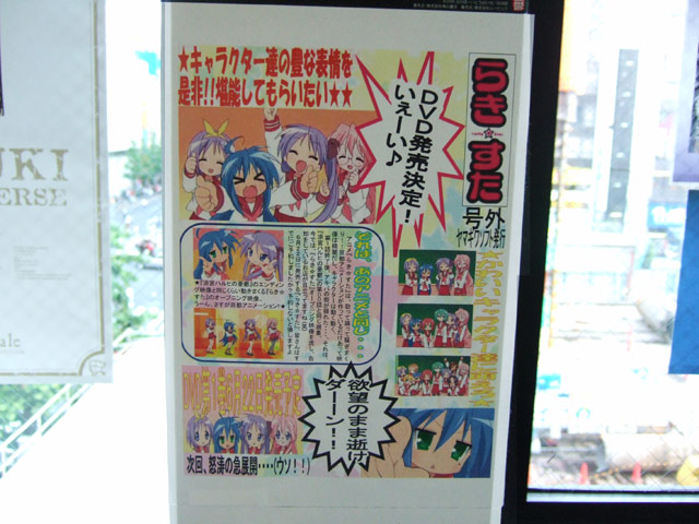ヤマギワソフト本店では「らき☆すた 号外」とした、DVD「らき☆すた 1巻」(AA)の新聞風告知POPの掲示がされていていました。
