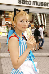 6月10日のホコ天は 朝の天候が悪く中止となっていましたが、アニレゲのうずめ閣下ことuzume AKA disco Devilさんや、HIP HOPガールズユニットPLATINUMさん、ZENピクチャーズの戦闘員さん・・・と メイドさんだけでなく 多ジャンルのコスプレやパフォーマンスを見ることができましたので、その様子をお伝えします。 画像はコスプレ焼肉 OK牧場のメイドさん。