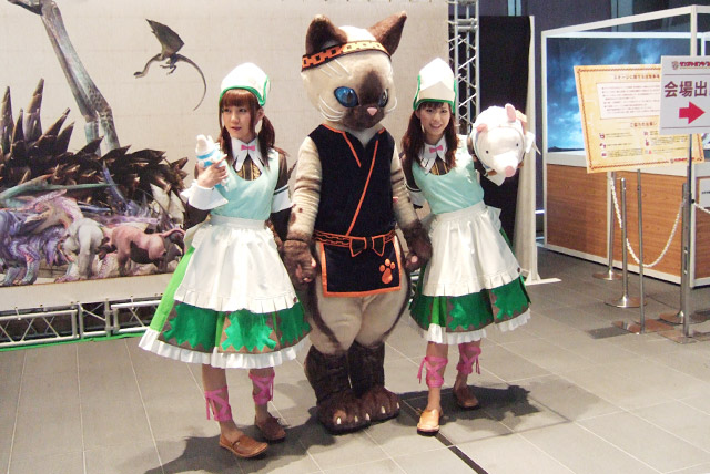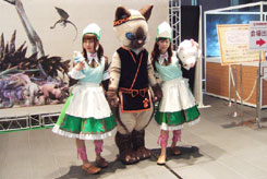 公式のコスプレイヤーさんと、モンスターハンターシリーズではお馴染みのアイルー。
