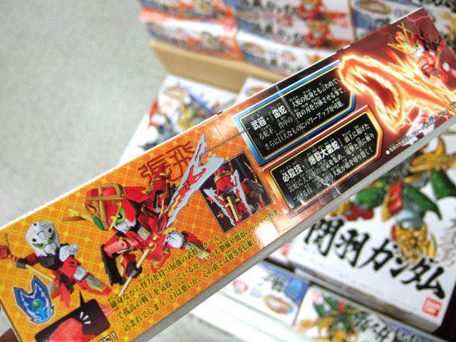 バンダイのBB戦士「No.300 劉備ガンダム」(AA)、「No.301 張飛ガンダム」(AA)、「No.302 関羽ガンダム」(AA)それぞれのパッケ表と側面の解説など。