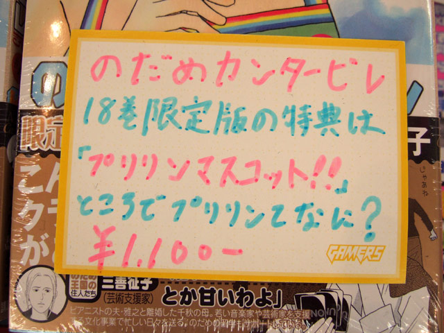 ゲーマーズ本店のPOPでは「のだめカンタービレ 18巻限定版の特典は「プリリンマスコット!!」ところでプリリンってなに?」とかかれていました。