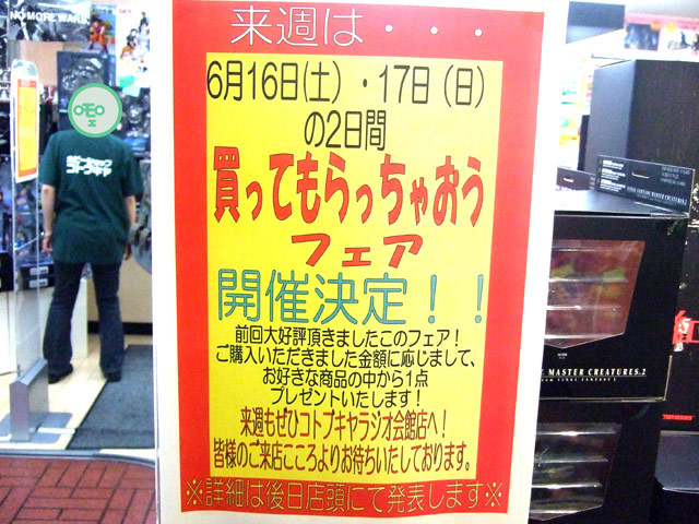 コトブキヤラジオ会館では、6月16日(土)・17(日)の2日間「買ってもらっちゃおうフェア」を開催するみたいです