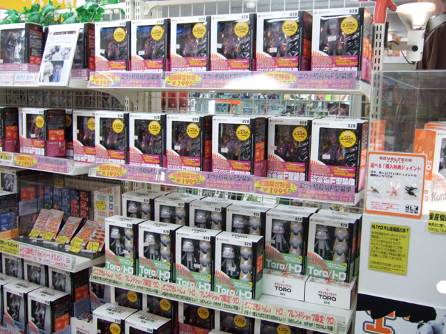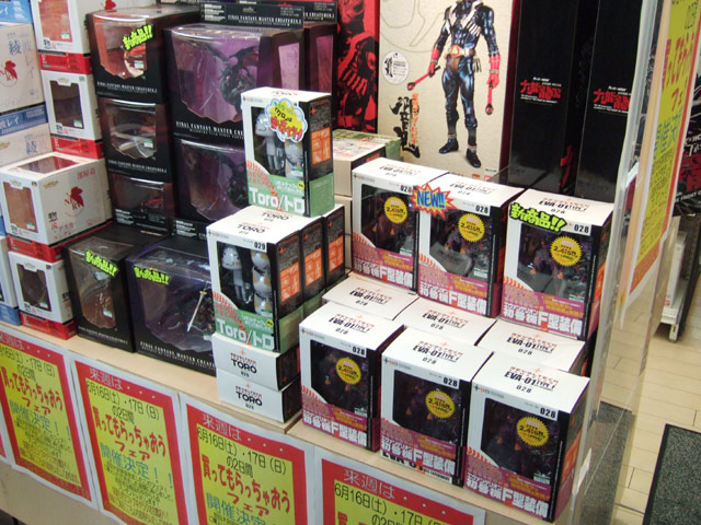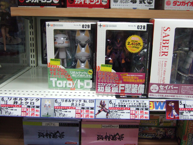15日は毎月恒例のリボルテックシリーズの発売日なので、6月15日も新作の「No.028 エヴァ初号機F型装備」(AM)、「No.29 どこでもいっしょ 井上トロ」(AA)、「Fショップ限定 どこでもいっしょ 井上クロ」が発売されました。ただし、「Fショップ限定 どこでもいっしょ 井上クロ」は、巡回した15日夕方にはアキバでは完売となっていて、見かけることは出来ませんでした。