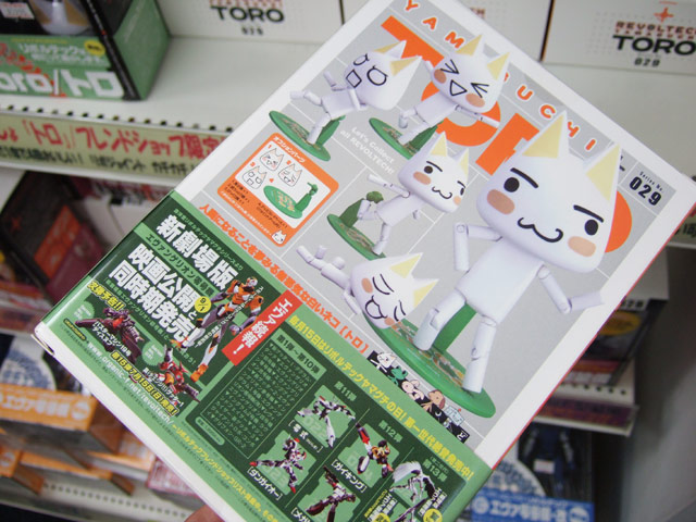 「No.29 どこでもいっしょ 井上トロ」(AA)のパッケ表裏。右の画像は海洋堂ホビーロビーでのサンプル展示の様子。