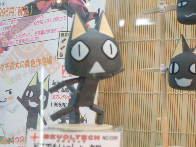 海洋堂ミュージアムストアの商品説明によると「オレッちの名前リボルバーに決めたみャ〜!トロがうらやましくて!?クロもフレンドショップ限定で登場!にくめないシニカルさをアピールしつつ、初めてのアクションフィギュア化です!!専用ベースを使用すれば、跳んだり走ったりする姿も思いのまま。お面のように4つの表情を選べる[顔面パーツまるごとすげかえシステム]採用。リボルテックの既成概念を突き破り、第2世代の可能性を広げるアイテムです。」と紹介されています。