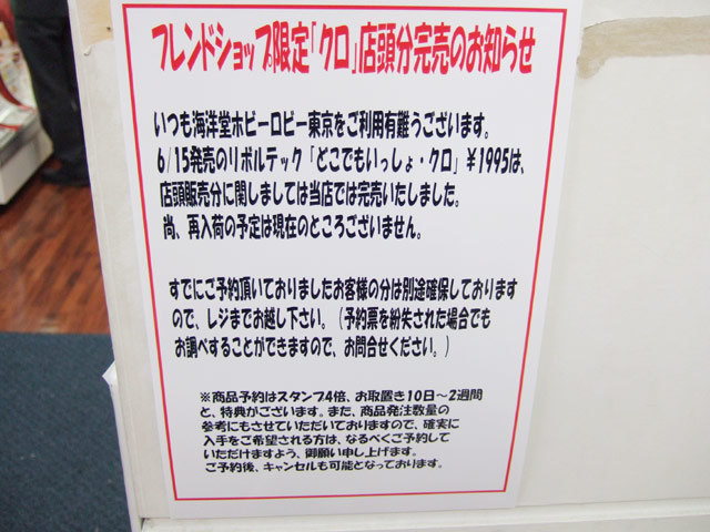 「Fショップ限定 どこでもいっしょ 井上クロ」も15日には発売となっていたみたいですが、巡回した15日夕方にはアキバでは完売となっていたらしく、いくつかの店舗で完売のPOPは見かけましたが、店頭で販売しているものは見かけることが出来ませんでした。