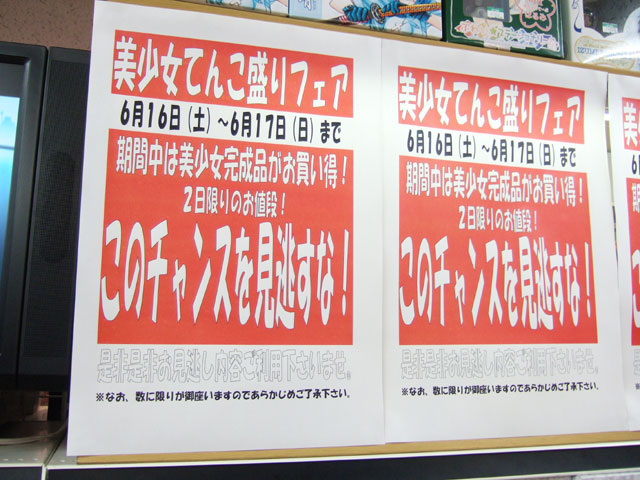 また、6月16日(土)〜6月17日(日)の間開催予定の「美少女完成品がお買い得!」という、「美少女てんこ盛りフェア」の告知も。