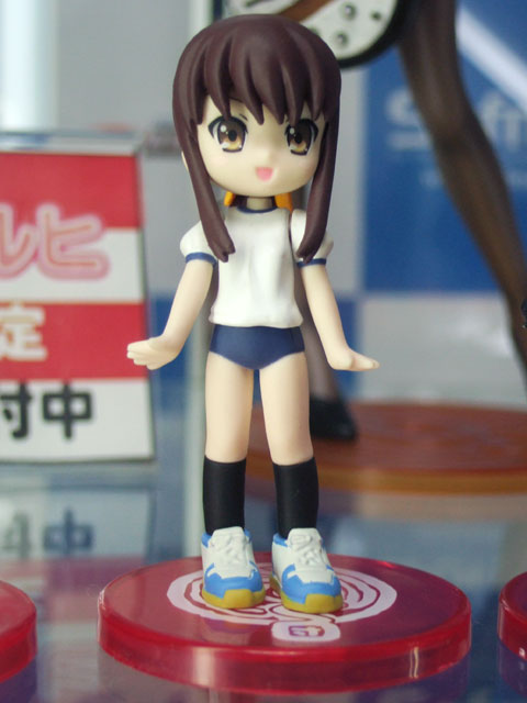 コナミ「フィギュメイト 涼宮ハルヒの憂鬱 第2弾」(RA)のサンプル展示がソフマップ本店にて開始しています。これは、2007年3月に発売された「第1弾」(AA)に続く、「涼宮ハルヒの憂鬱」のキャラたちを、ちびすけマシーン氏がイメージイラストを担当している、コナミのディフォルメフィギュアシリーズ「フィギュメイト」にしたものの第2弾です。レアとなる、体操服姿のハルヒも展示。