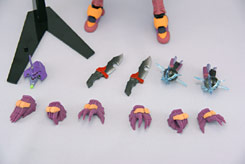 インパクト・ボルト×2、プログレッシブ・ダガー×2、オプションヘッド×1、オプションハンド×6、ディスプレイベース×1付属。