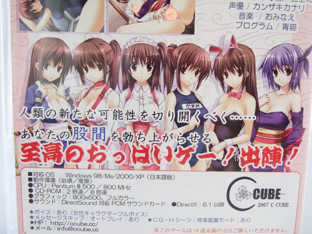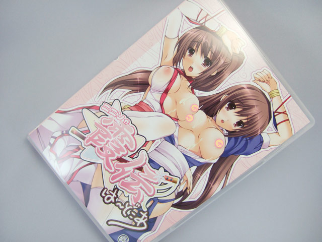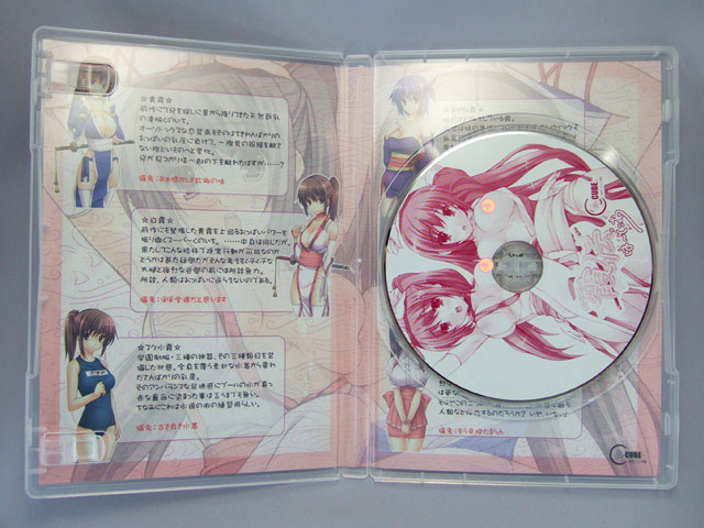 サークルC-CUBEの大人向け同人ソフト「ニニンが霞伝 は〜どこあ」のパッケ表裏とパッケをあけてみた様子。