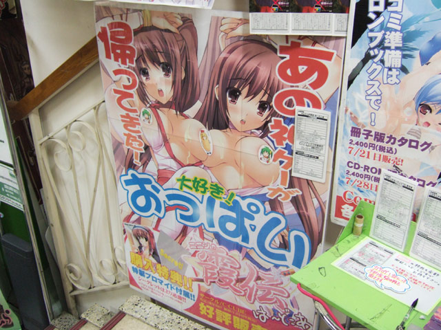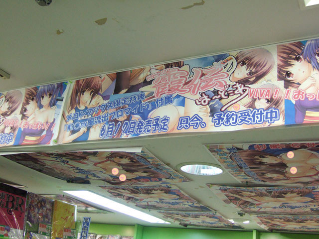メロンブックスでは、販売にかなり力を入れているみたいで、以前伝えした告知POPのほか、同人誌コーナー棚のエンドや、天井等にも、「ニニンが霞伝 は〜どこあ」のPOPやポスターが掲示されていました。