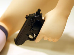 通常版では未来銃っぽいものを持っていましたが、こちらでは現代風の銃を持っていました。
