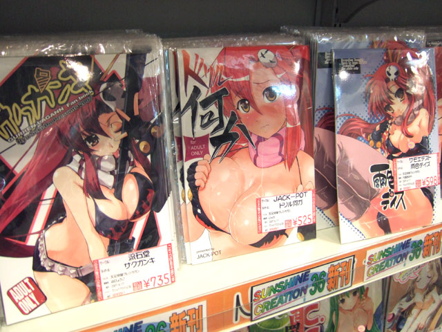 以前カレンのおっぱいとC.C.の股間の間に差し込む同人誌を紹介したこともある、じゅら氏のサークルJACK-POTサンクリ36で頒布された同人誌「ドリル何か」が発売されています。これは、最近多くなってきたグレンラガンのヨーコの同人誌で、シモンのアレが回転するドリルという設定で、ヨーコの一部分を掘ったり挟んだりかき回したりしちゃう内容の大人向け同人誌。