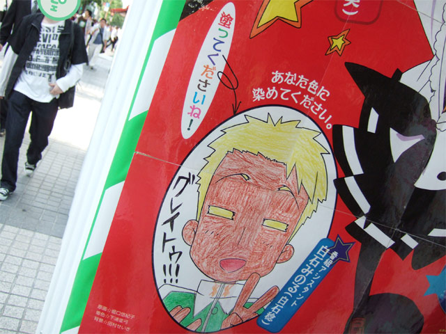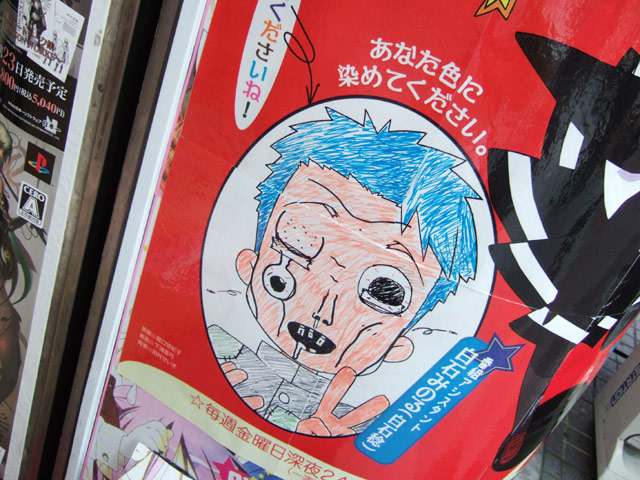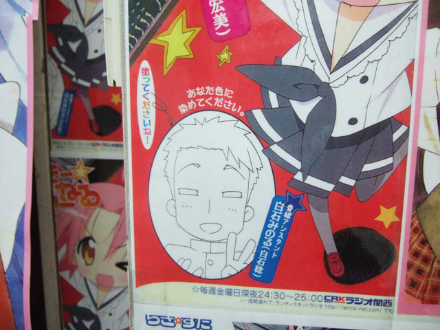 他、以前から掲示されている告知ポスターにあった、白石みのるの「あなた色に染めてください」な塗り絵が、いくつか塗られていました。