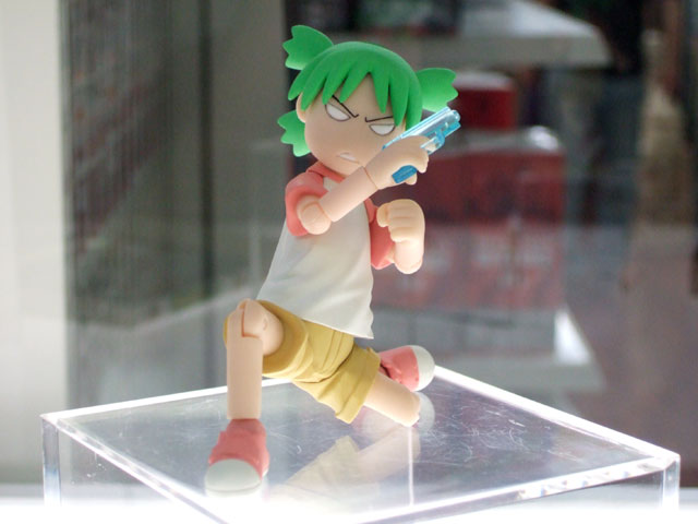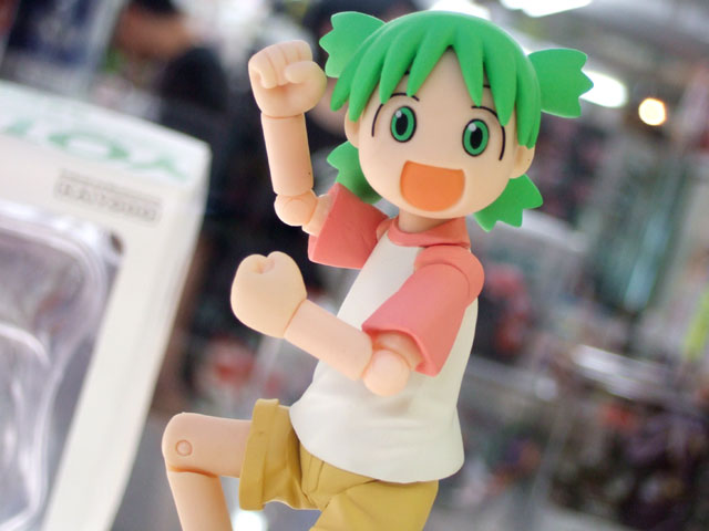 よつばスタジオホームページでも公表されている「よつばとリボルテック」のサンプル展示が海洋堂ホビーロビーにて開始しています。これは『ちょっとかわった女の子「よつば」と、とーちゃんと、まわりの人たちとのなにげない日常を描いたマンガ』という「よつばと!」の「よつば」をリボルテックシリーズにて立体化したもの。展示されていたサンプルは、全部で4体でした。