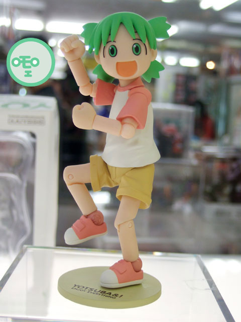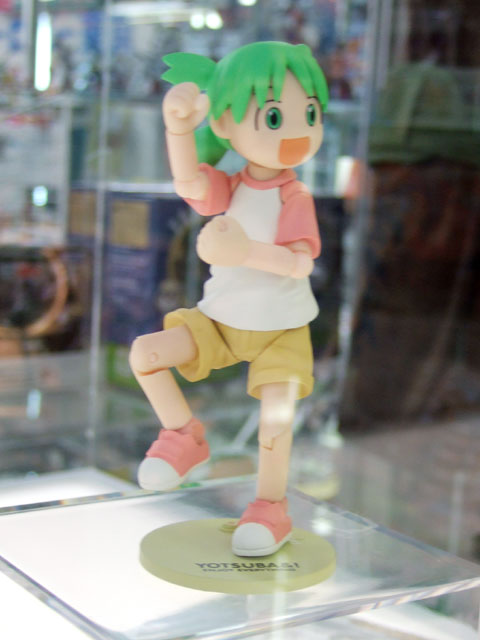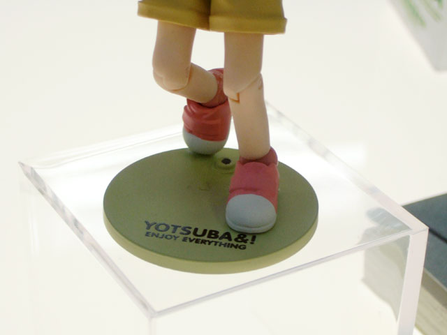 これは『ちょっとかわった女の子「よつば」と、とーちゃんと、まわりの人たちとのなにげない日常を描いたマンガ』という「よつばと!」の「よつば」をリボルテックシリーズにて立体化したもの。展示されていたサンプルは、全部で4体でした。