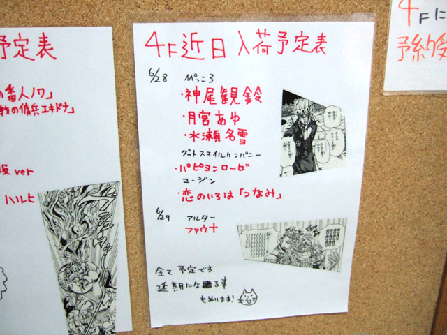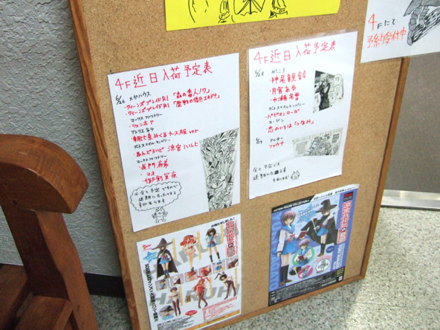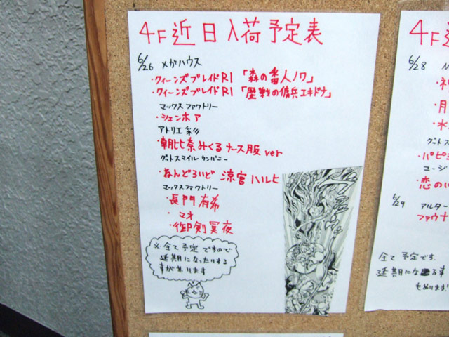 他、とらのあな本店で掲示されていたフィギュア発売日変更リストや、キャラシティにあった6月入荷予定リスト等、6月24日にアキバで見かけた発売予定、延期の告知POPをまとめてお伝えします。