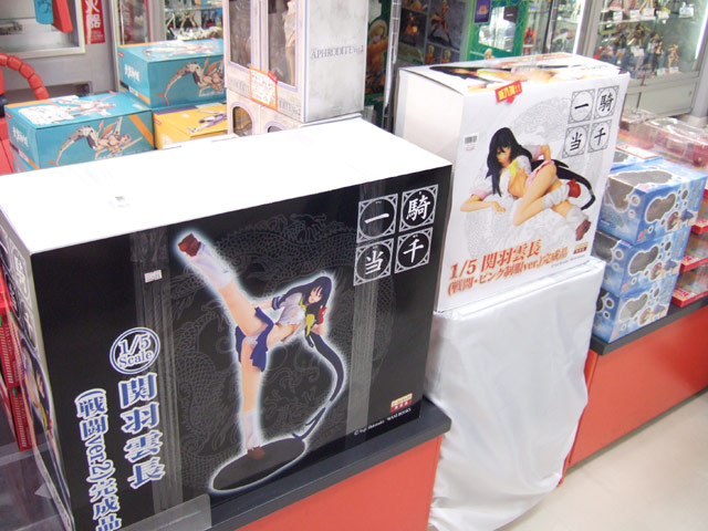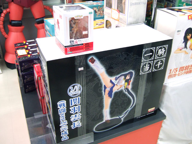 6月24日、ムサシヤ「一騎当千 関羽雲長 戦闘ver.2」(AM)がとらのあな本店にて発売されました。これは、ワンフェス2007冬等でもサンプル展示のあった「一騎当千」の関羽を、色々な意味で豪快なハイキックポーズで立体化したガレキをコールドキャスト製の完成品にしたもの。1/5スケールと元から大きいうえ、ハイキックポーズなので、パッケの大きさが異常なでかさにw
